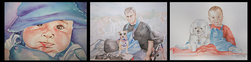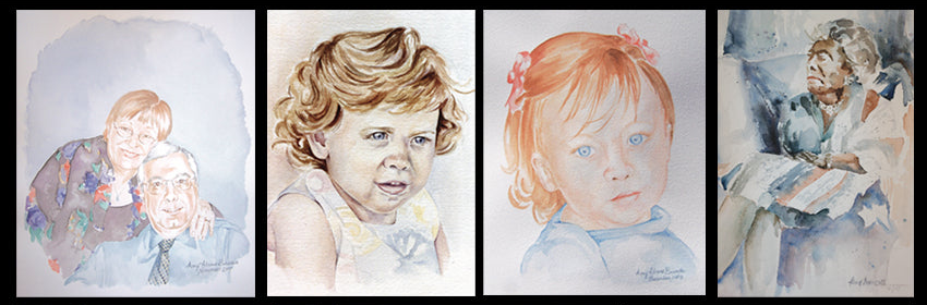 Commission a one-of-a-kind custom, signed watercolor portrait by Amy Ahrens. I use only the finest materials: Arches 100% cotton paper and Winsor & Newton Professional Watercolors for archival quality and exceptional vibrancy. I will deliver an everlasting keepsake for you to cherish for many generations.