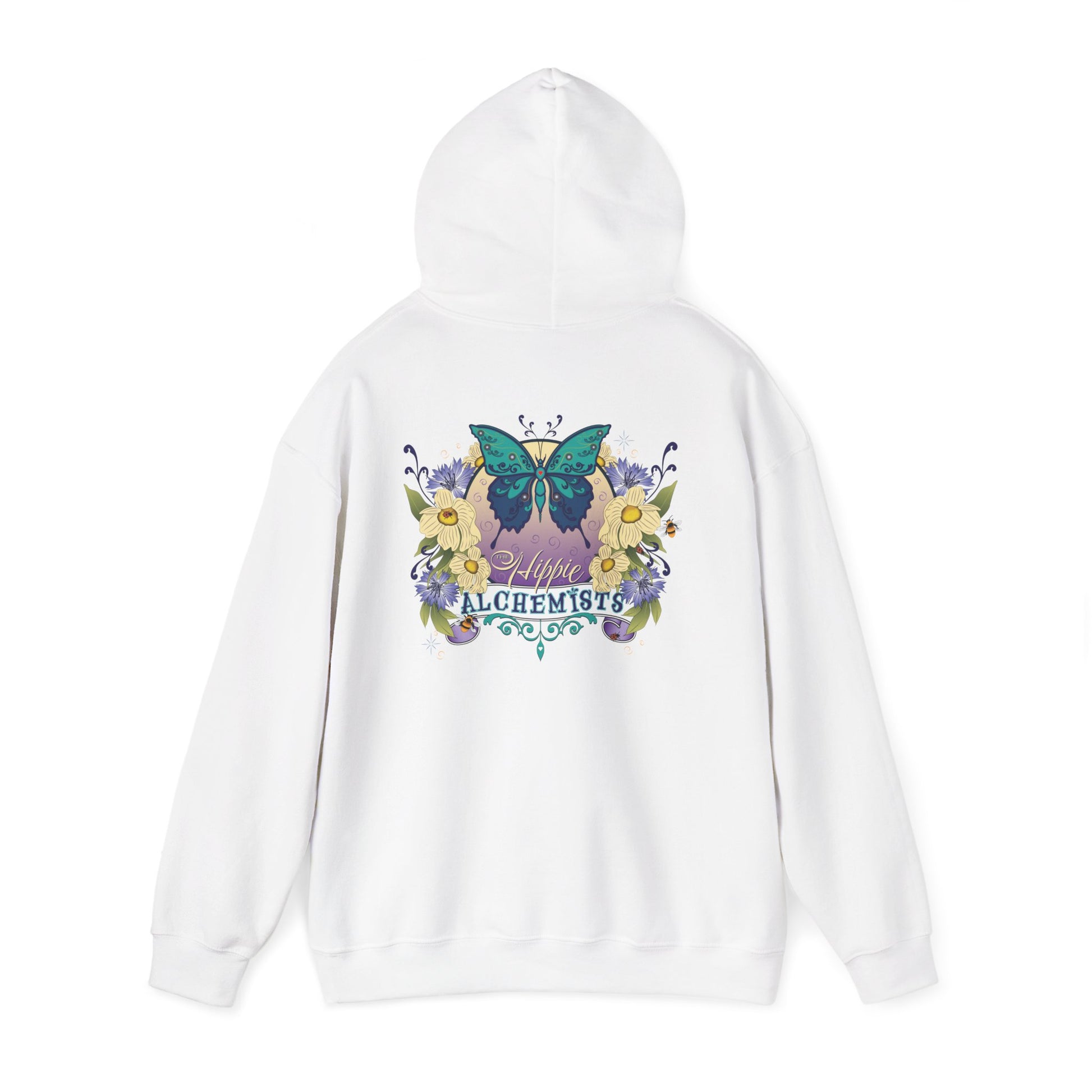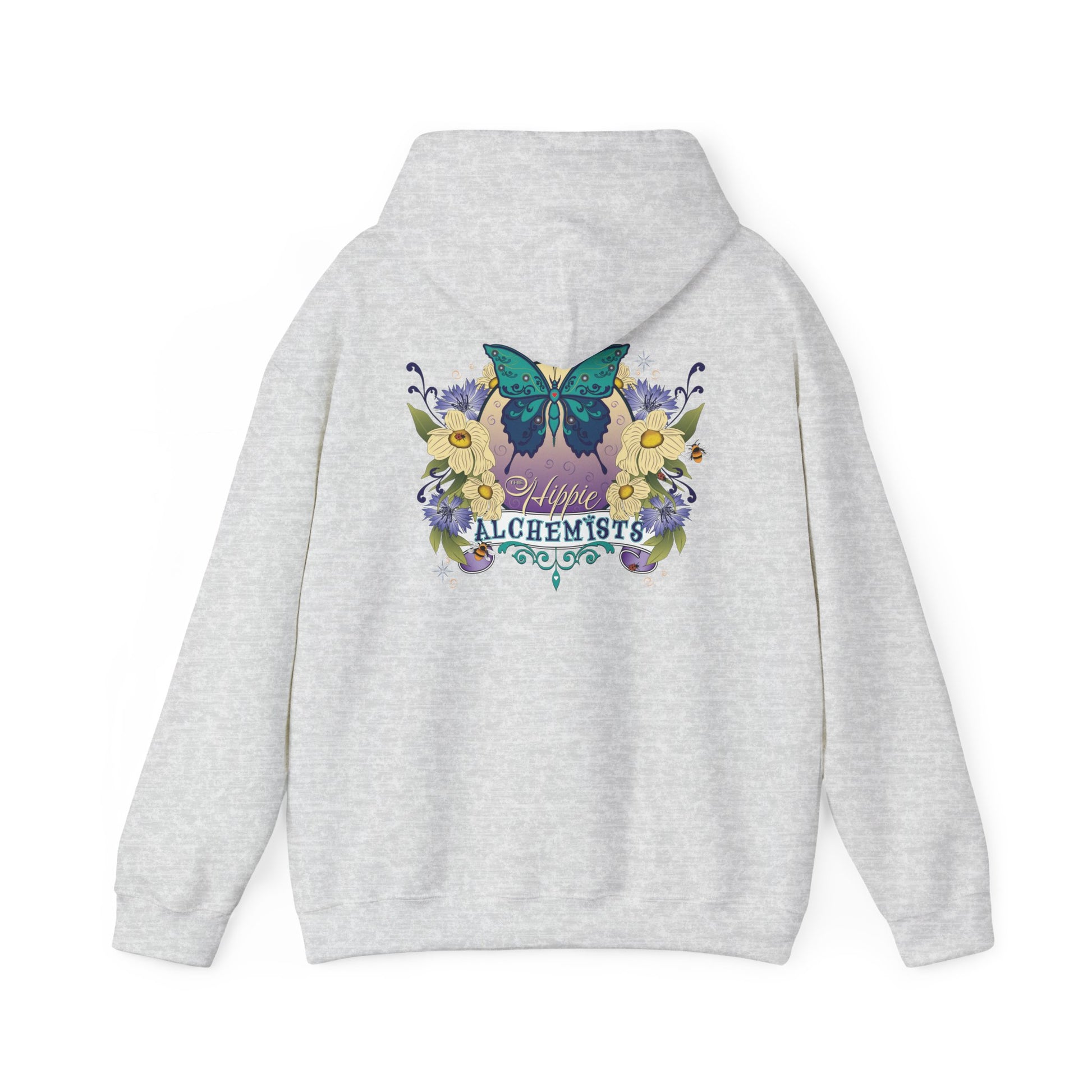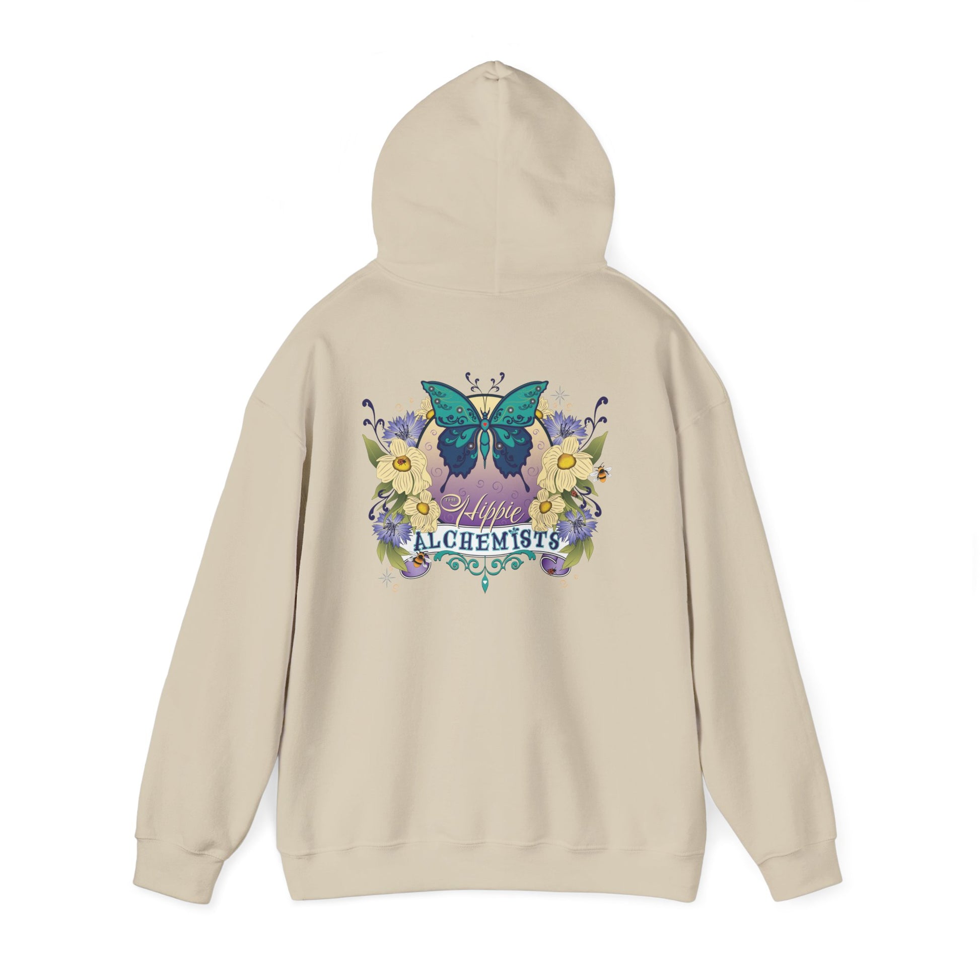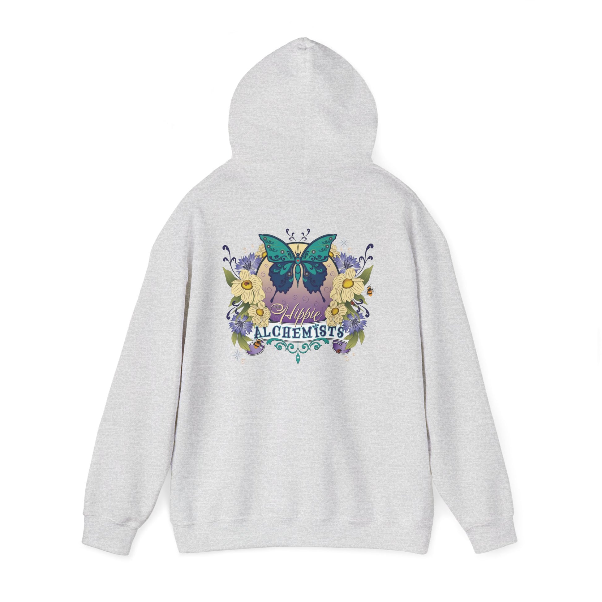 The Hippie Alchemists Hoodie, Unisex Sweatshirt, Nature-Inspired Apparel, Gift for Butterfly Lovers, Spiritual Fashion, Cozy Layering