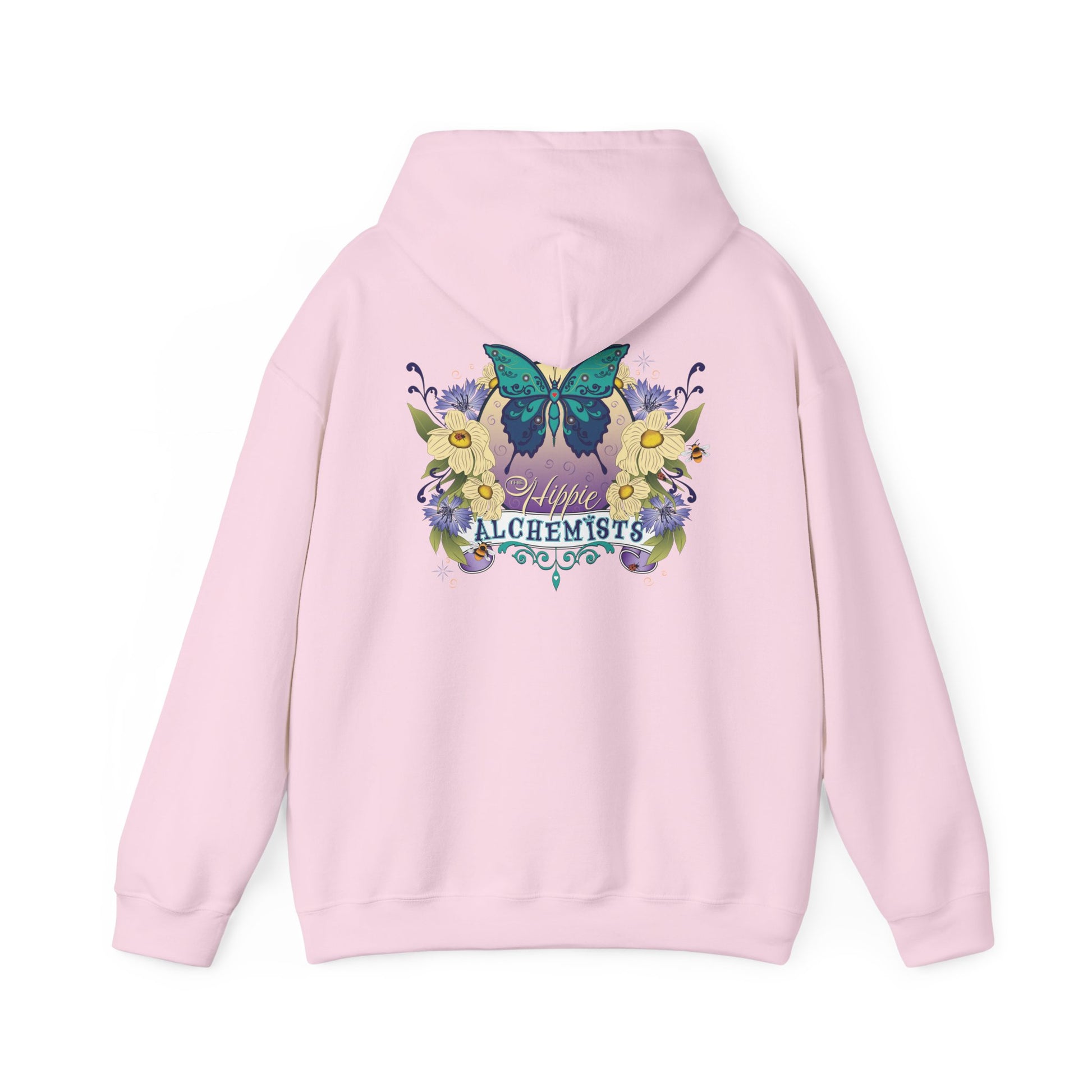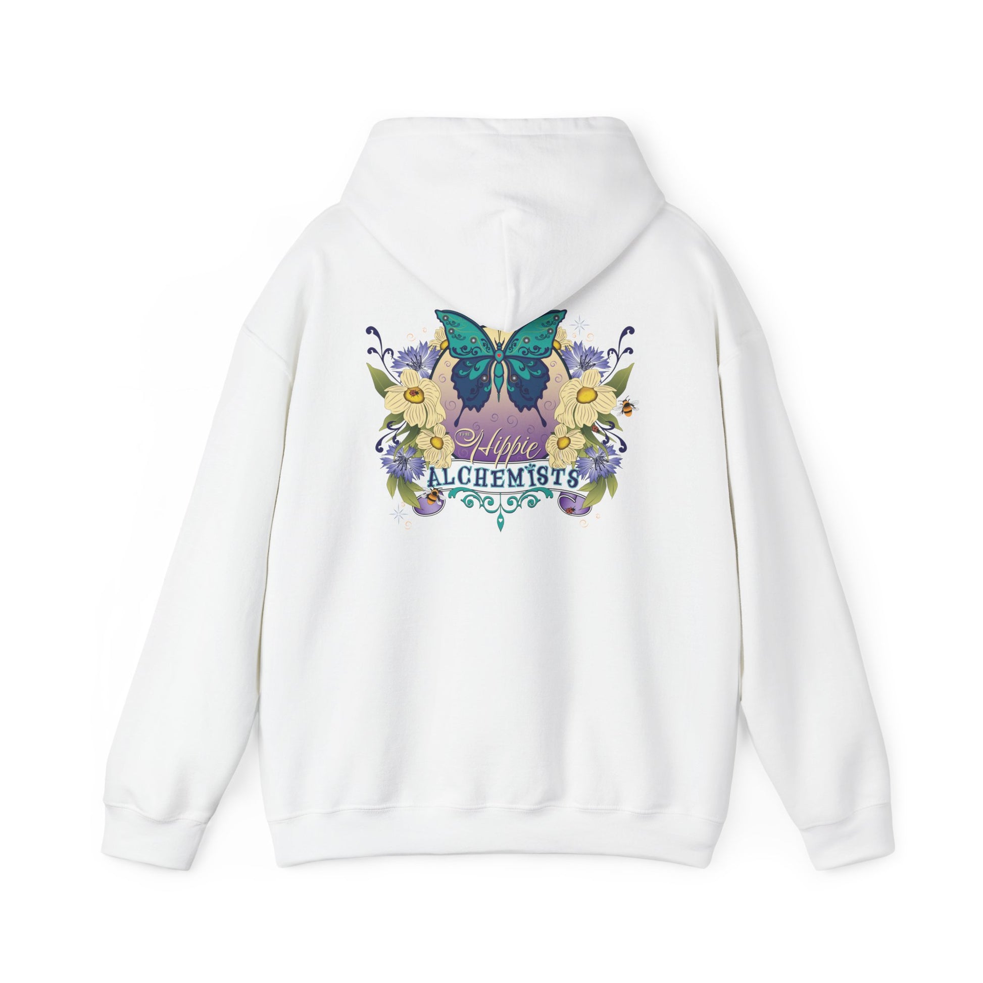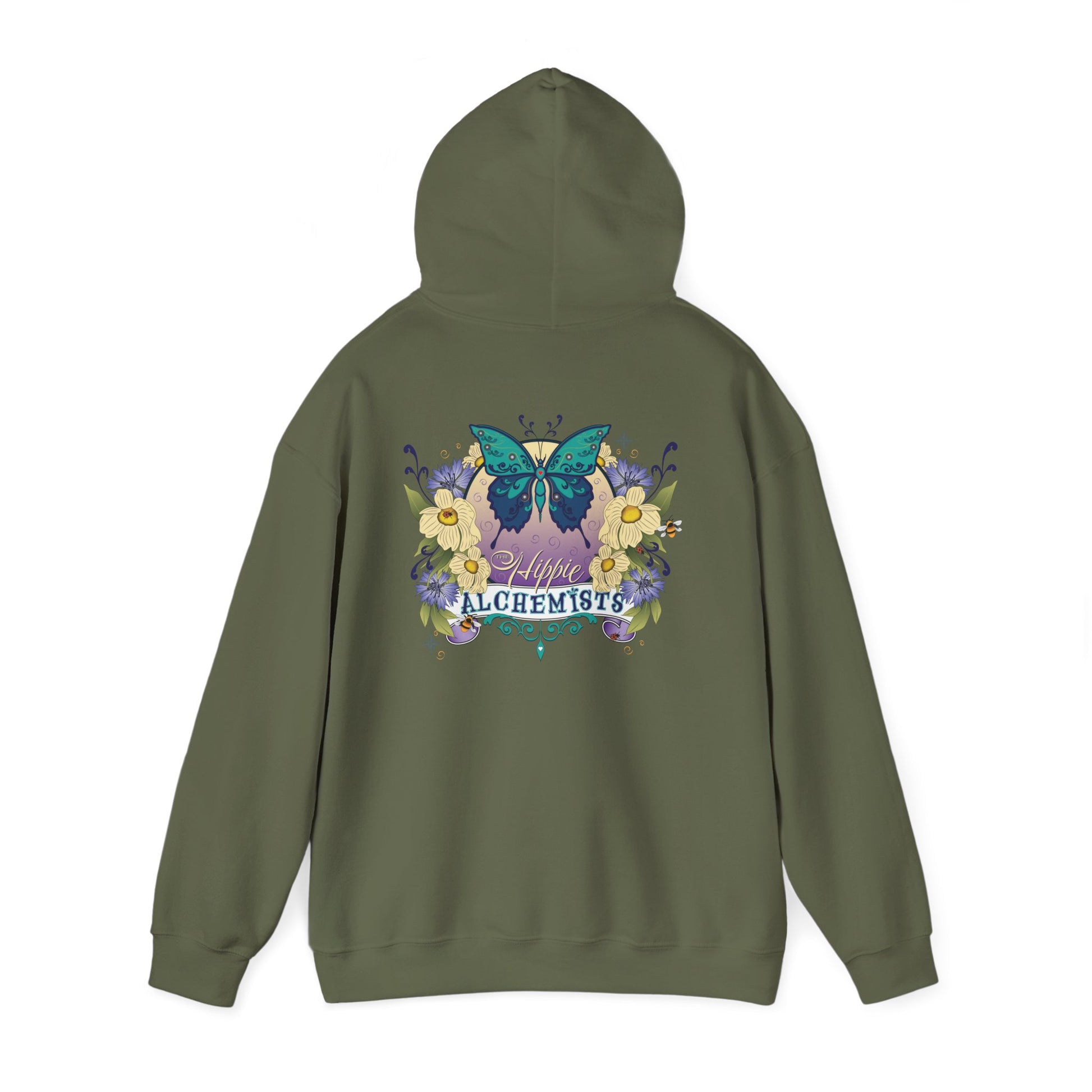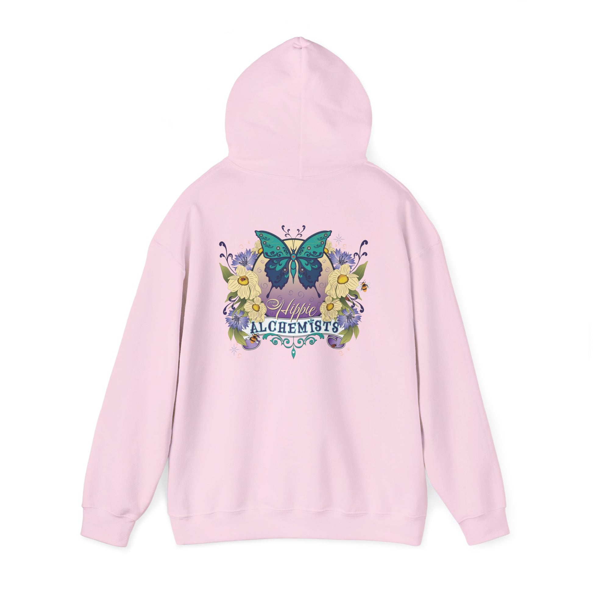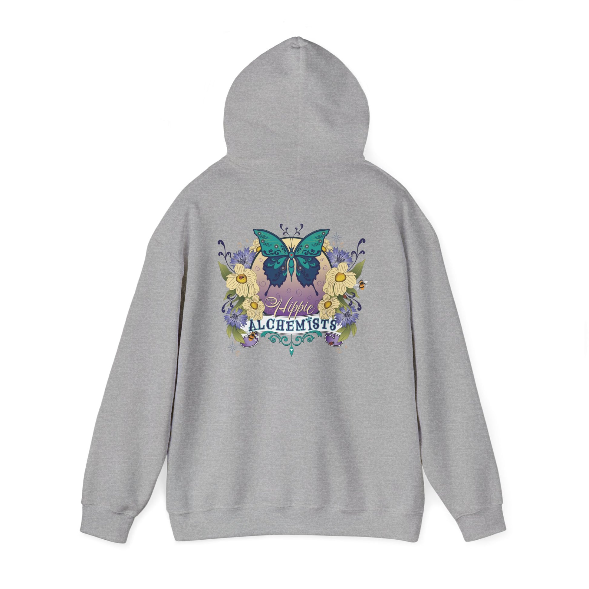 The Hippie Alchemists Hoodie, Unisex Sweatshirt, Nature-Inspired Apparel, Gift for Butterfly Lovers, Spiritual Fashion, Cozy Layering